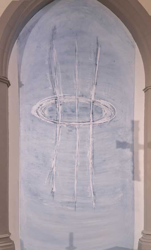 En els laterals veiem dos murals gairebé idèntics. En cada un d’ells es pot veure un cercle vibrant en el centre que simbolitza la Força de l’Esperit Sant.