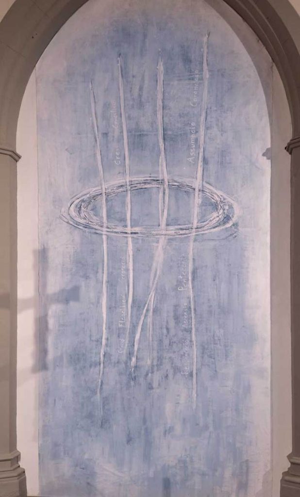 Al voltant del presbiteri s’ha desplegat un mural en forma de tríptic que emfatitza la presència de l’Esperit Sant en la celebració eucarística. Aquest mural, pintat per l’artista Goretti Pomé, porta per títol: Epíclesis, nom que rep la invocació a l’Esperit Sant en les celebracions litúrgiques.